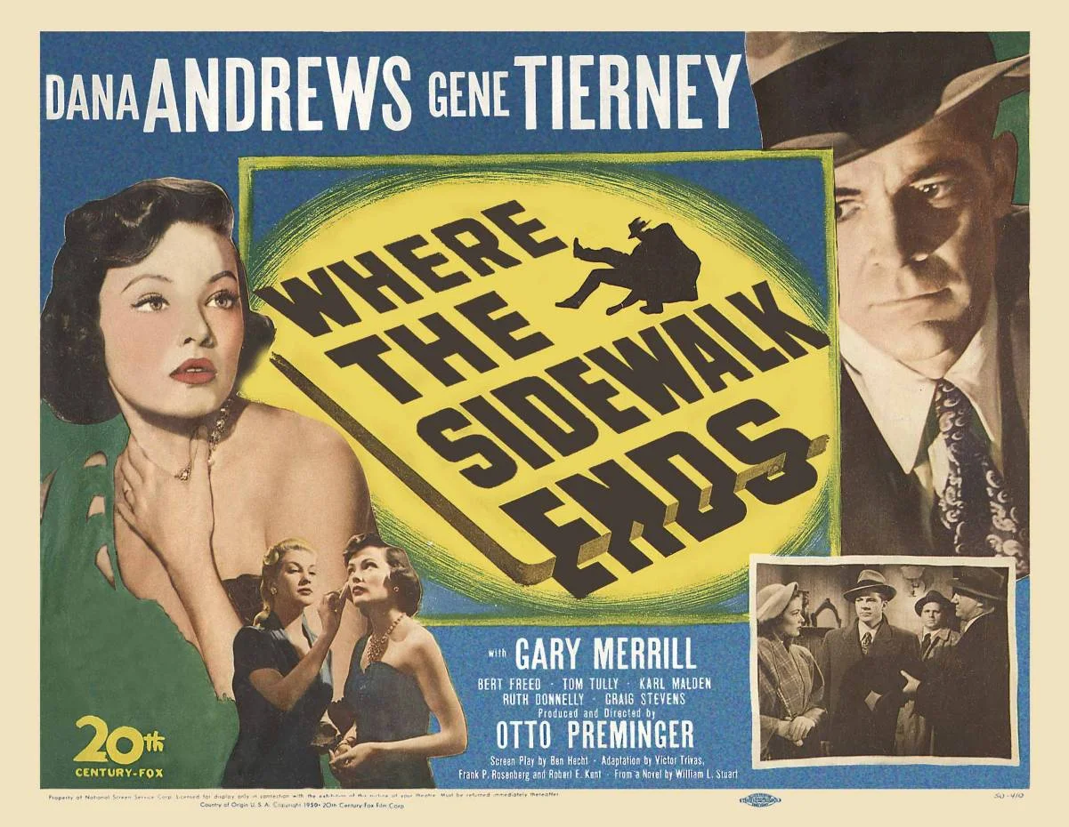 «Al Borde del Peligro» (1950) Título original: Where the Sidewalk EndsDirector: Otto PremingerGuion: Ben HechtProtagonistas: Dana Andrews, Gene Tierney, Gary Merrill, Karl Malden