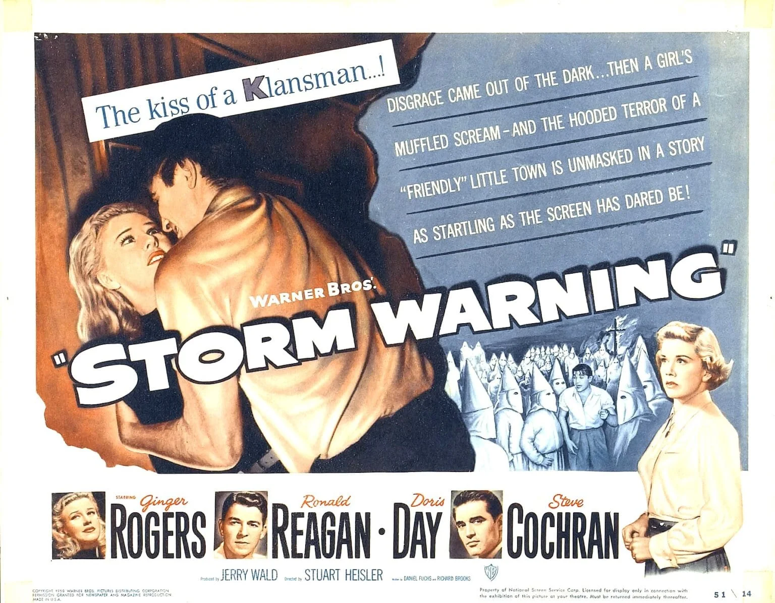 Estrenada el 17 de noviembre de 1950, Aviso de tormenta (Storm Warning) se erige como una de las producciones más valientes del Hollywood clásico al abordar de forma dire...