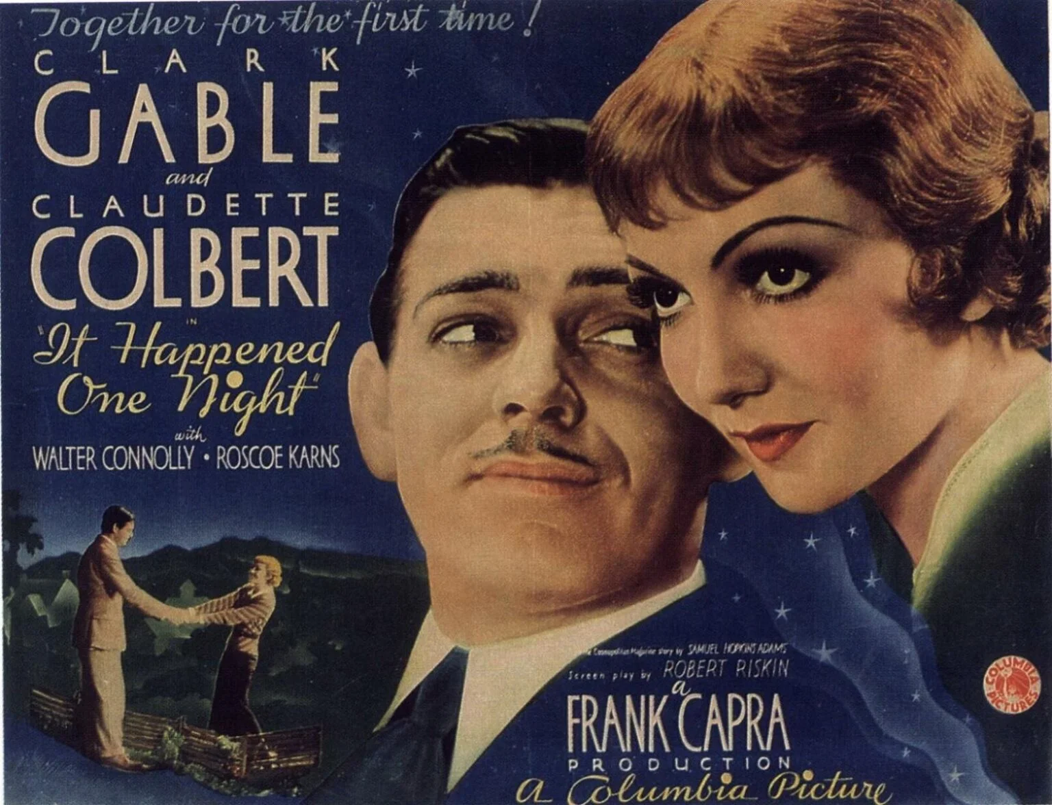 Actores:  Clark Gable , Claudette Colbert , Jameson Thomas , Roscoe Karns , Walter Connolly , Alan Hale Directores:  Frank Capra